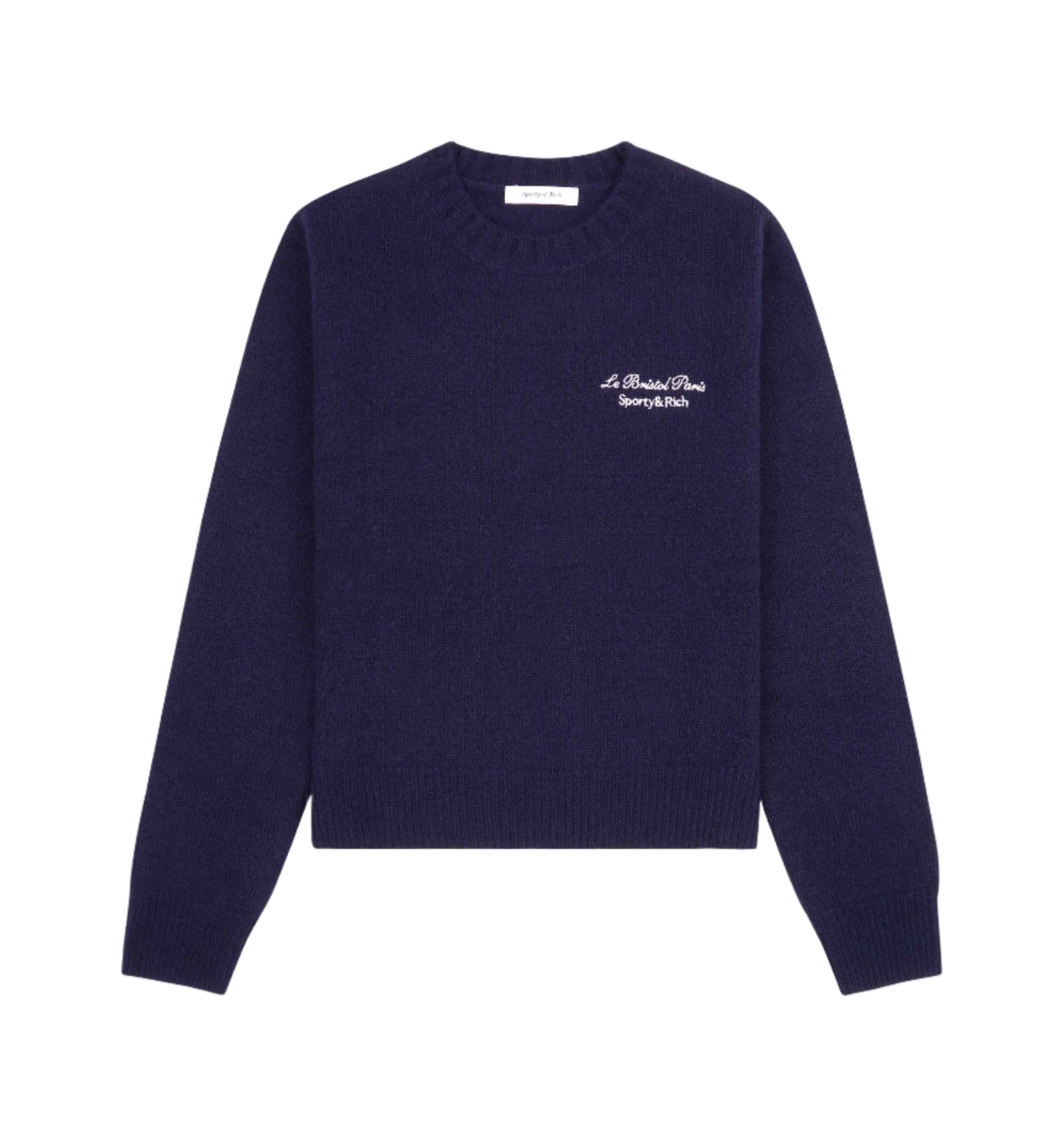 A limited edition Sporty & Rich x Le Bristol Paris Cashmere Crewneck Jumper. This luxurious piece combines Sporty & Rich’s chic casual wear with Le Bristol Paris’s timeless elegance.