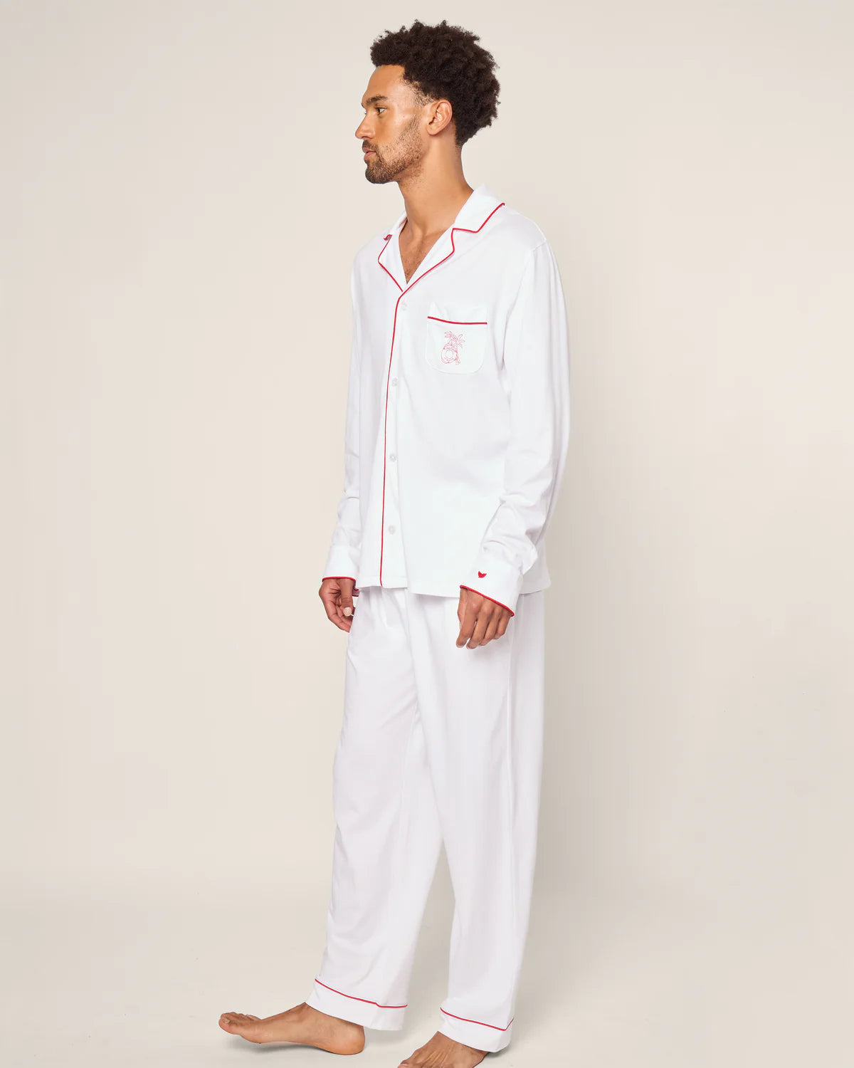 The quintessential, timeless pyjama silhouette that always feels fresh: supple elastic waist, single piping detail at collar, breast pocket, and pyjama pant cuff and practical pockets. As effortless and comfortable as luxury sleepwear gets.