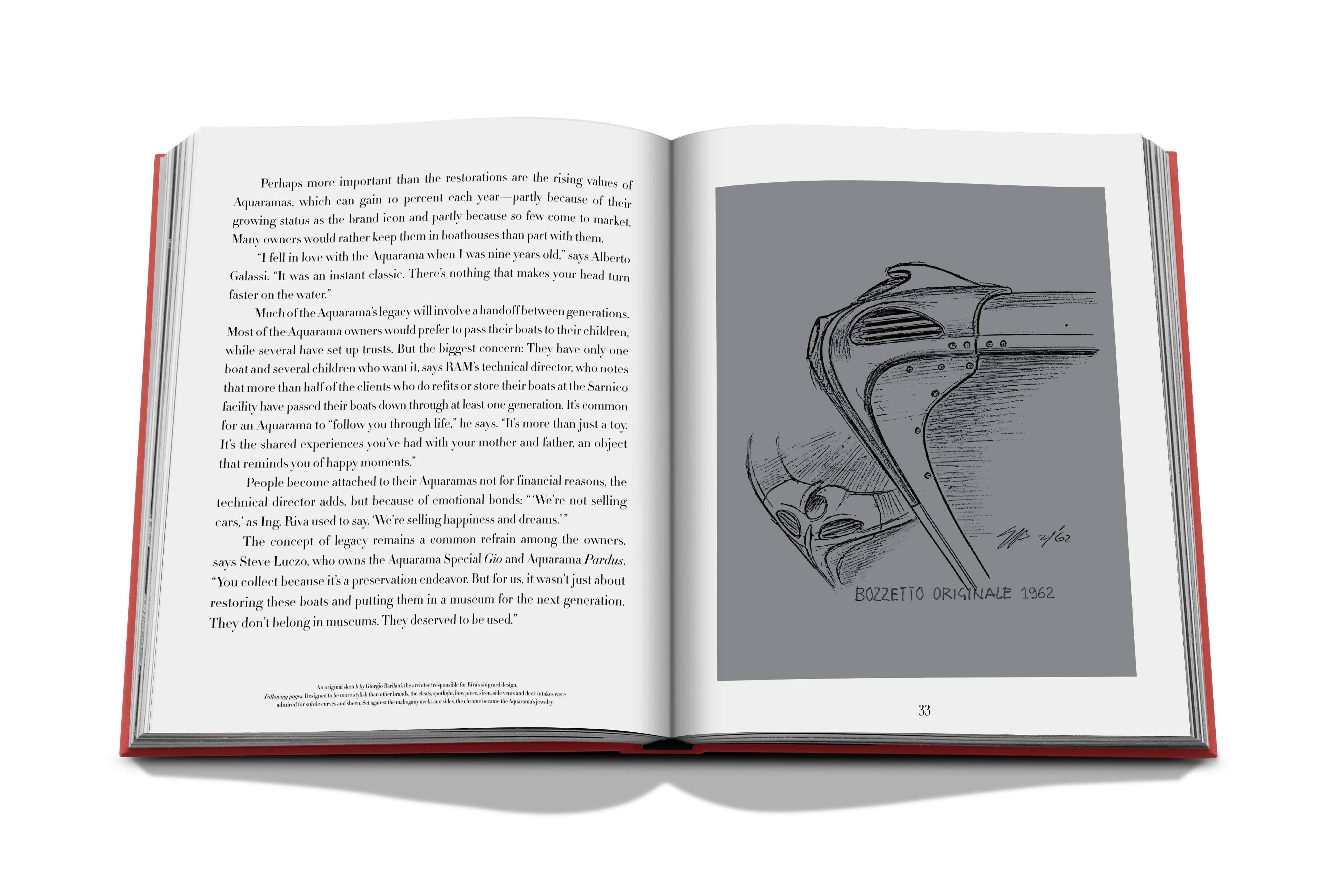 The Riva icon enjoyed a mythical status and was beloved by movie stars, heads of state and royalty—everyone from Brigitte Bardot, Elizabeth Taylor, Gunter Sachs and the royal family of Monaco, among countless other luminaries, have been enchanted by the Aquarama’s spell. Of the about 760 completed Aquaramas made in the Sarnico shipyard, Riva experts estimate around 650 are still in existence, which only adds to the boat’s legendary status. But more than just a trophy, the Aquarama is fiercely beloved by its owners and enthusiasts alike—it’s not just a boat, but the realization of a dream. In this exceptional tribute to the Aquarama, author Michael Verdon tells the story of the legendary boat and brings to life its dolce vita charm. The book is also offered in a special edition, presented in a luxury mahogany box that is crafted to express the beauty of the Aquarama’s magnificent hull. This special edition offers owners, collectors and enthusiasts alike a piece of the Riva dream.