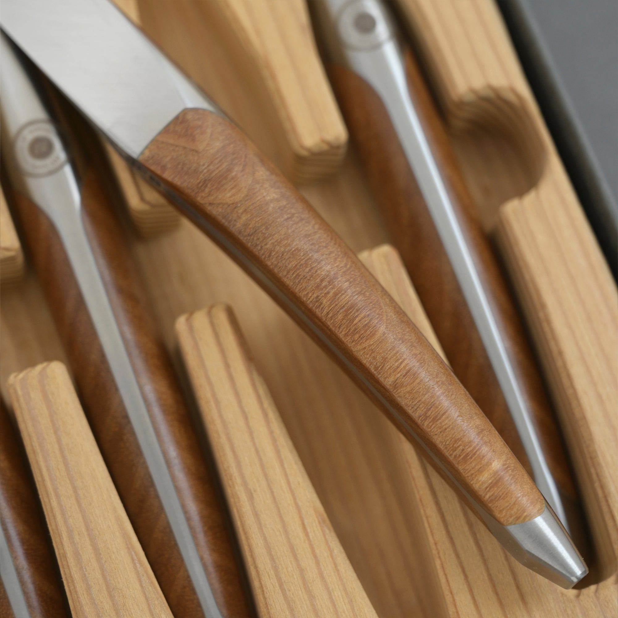 Swiss precision meets timeless design. Each Sknife knife set is crafted with the highest attention to detail, featuring elegant handles in light brown and a flawless blade. A true collector’s piece for culinary enthusiasts.