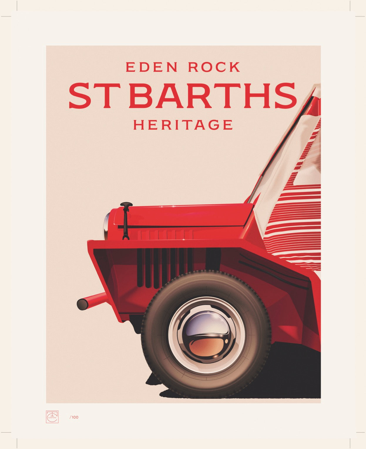 An elegant tribute to the playful sophistication of Eden Rock - St Barths. This artwork pairs the hotel’s unmistakable red with the sculptural lines of a vintage vehicle, blending nostalgia, design, and destination into a visually arresting piece.